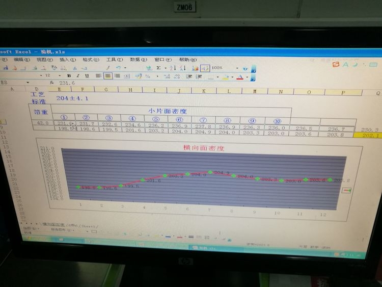 更換上圖墊片厚度為1.0mm后各項(xiàng)工藝要求可控達(dá)標(biāo),若在停機(jī)過長時(shí)需要將模頭腔體的漿料噴出更換新料否則會(huì)出上圖面密度或不同程度規(guī)則的變化。